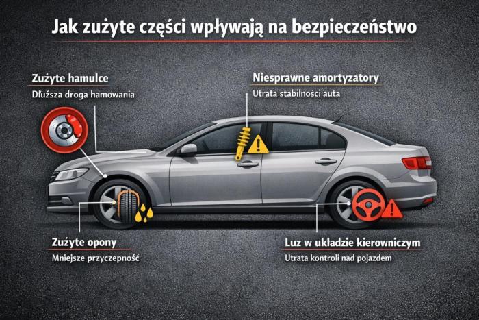 Zużyte części samochodowe rzadko są jedyną przyczyną wypadków, ale często stanowią jeden z kluczowych czynników ryzyka. Sprawny technicznie samochód daje kierowcy większą kontrolę i przewidywalność w każdej sytuacji.