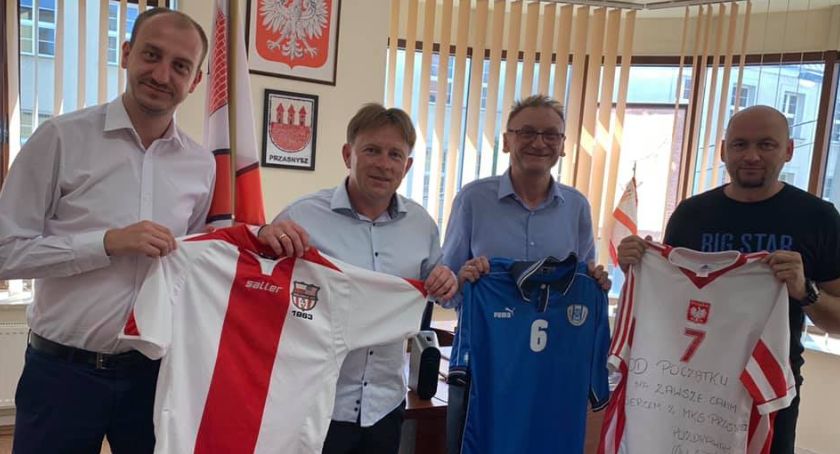 W spotkaniu w Urzędzie Miasta udział wziął: burmistrz Łukasz Chrostowski, przewodniczący RM Wojciech Długokęcki oraz prezes MKS Przasnysz - Jacek Klinger. Burmistrz wręczył Grzegorzowi Wędzyńskiemu koszulkę przasnyskiego zespołu.