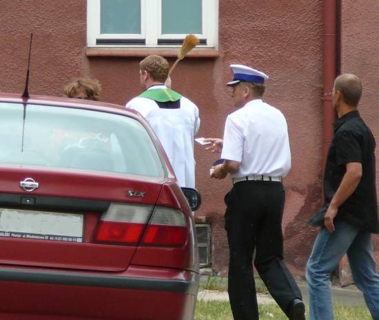 W Przasnyszu tradycyjnie podczas święcenia pojazdów obecni byli policjanci "drogówki", którzy wręczali tym razem nie mandaty ale wizerunek patrona kierowców z modlitwą: Boże, daj mi pewną rękę i bystre oko, abym nikomu nie wyrządził żadnej szkody. Nie pozwól Dawco życia, bym się stał przyczyną śmierci lub kalectwa, a także zachowaj od nieszczęścia i wypadku. Pohamuj pokusę nadmiernej szybkości. Oby piękno stworzonego przez Ciebie świata i radość Twojej łaski towarzyszyły mi na zawsze. Amen