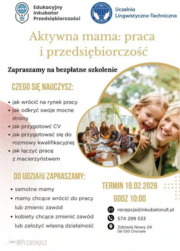 Aktywna mama – wsparcie, wiedza i motywacja w drodze do zawodowej niezależności