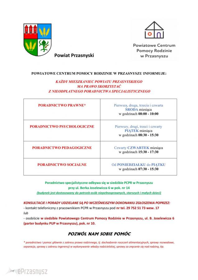 Bezpłatna pomoc specjalistów w PCPR w Przasnyszu – wsparcie dla osób i rodzin