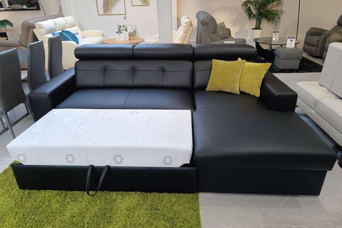 Narożnik Bianko to połączenie nowoczesnej prostoty i wyjątkowego designu. Jego subtelną linię podkreślają efektowne przeszycia oraz pikowania na siedziskach i oparciach, a regulowane zagłówki, które można ustawić w wielu płaszczyznach, dodają mu indywidualnego charakteru. Wyjątkowy wygląd narożnika podkreślają chromowane nóżki i perfekcyjne wykonanie. Dodatkowo, kolekcja Bianko oferuje funkcję spania oraz pojemnik na pościel, co czyni ją niezwykle praktyczną.