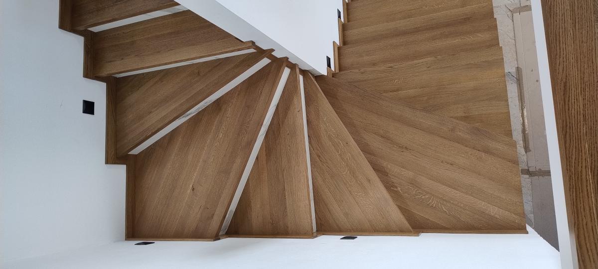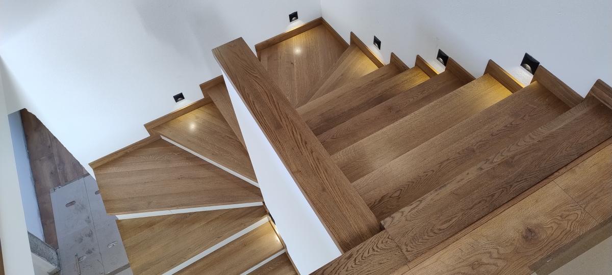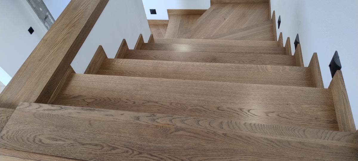 Schody produkowane są z selekcjonowanego drewna dębowego, suszonego komorowo do wilgotności 6-8% co gwarantuje prawidłowy montaż i użytkowanie.