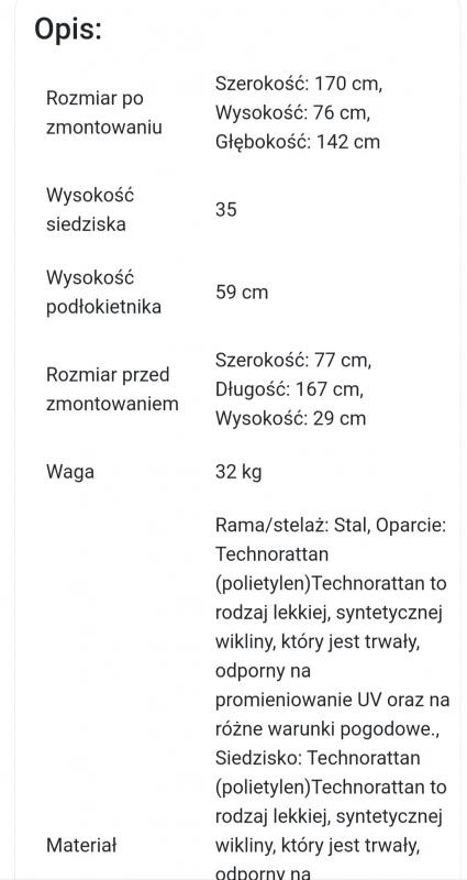 Nowa sofa ogrodowa, oryginalnie zapakowana. Wymiary na zdjęciu.