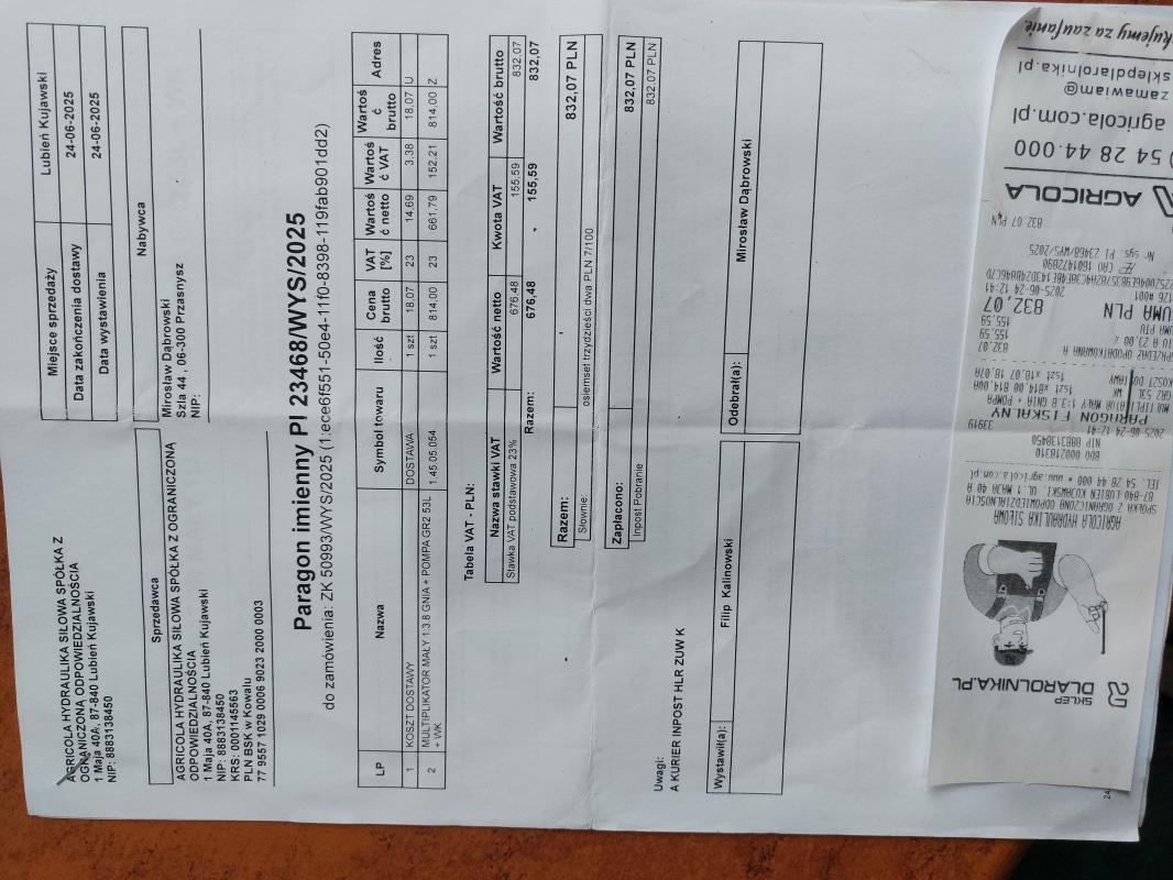 Sprzedam nowy multikator do cyklopa 40l/min,kupiłem go do przyczepki zrywkowej i okazało się że ma zamały przepływ.Kosztował ponad 800 zł.sprzedaje za 500,był tylko raz użyty .Dołączam fakturę zakupu.
